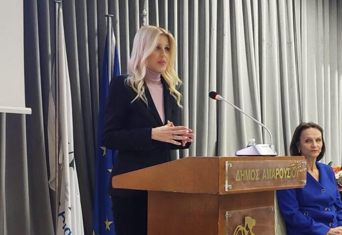 Στην εκδήλωση της Δημοτικής Επιτροπής Ισότητας Δήμου Αμαρουσίου με θέμα «Σωματική βία: η κορυφή του παγόβουνου – οι σιωπηλές μορφές βίας που προμηνύουν το κακό», απηύθυνε χαιρετισμό η Υφυπουργός Κοινωνικής Συνοχής & Οικογένειας Έλενα Ράπτη.