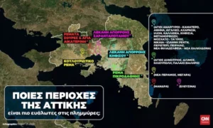 Δυτική Αττική: Περιοχές γύρω από Ελευσίνα και Μάνδρα, όπως Σαρανταπόταμος, Σούρες και Αγία Αικατερίνη, λόγω περιορισμένων ή μη επαρκών ρεμάτων.